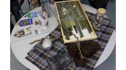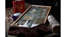 Инсталляция повествует о партизанском движении времен Великой Отечественной Войны 1941-1945 г.г. и состоит из имитации танковой гусеницы, березового полена, фляги, цветка подснежника, книги «Великая Отечественная война» с георгиевской ленточкой. Уникальность этому фото придают рукавицы и рисунок акварелью старого партизана, выполненный авторами.